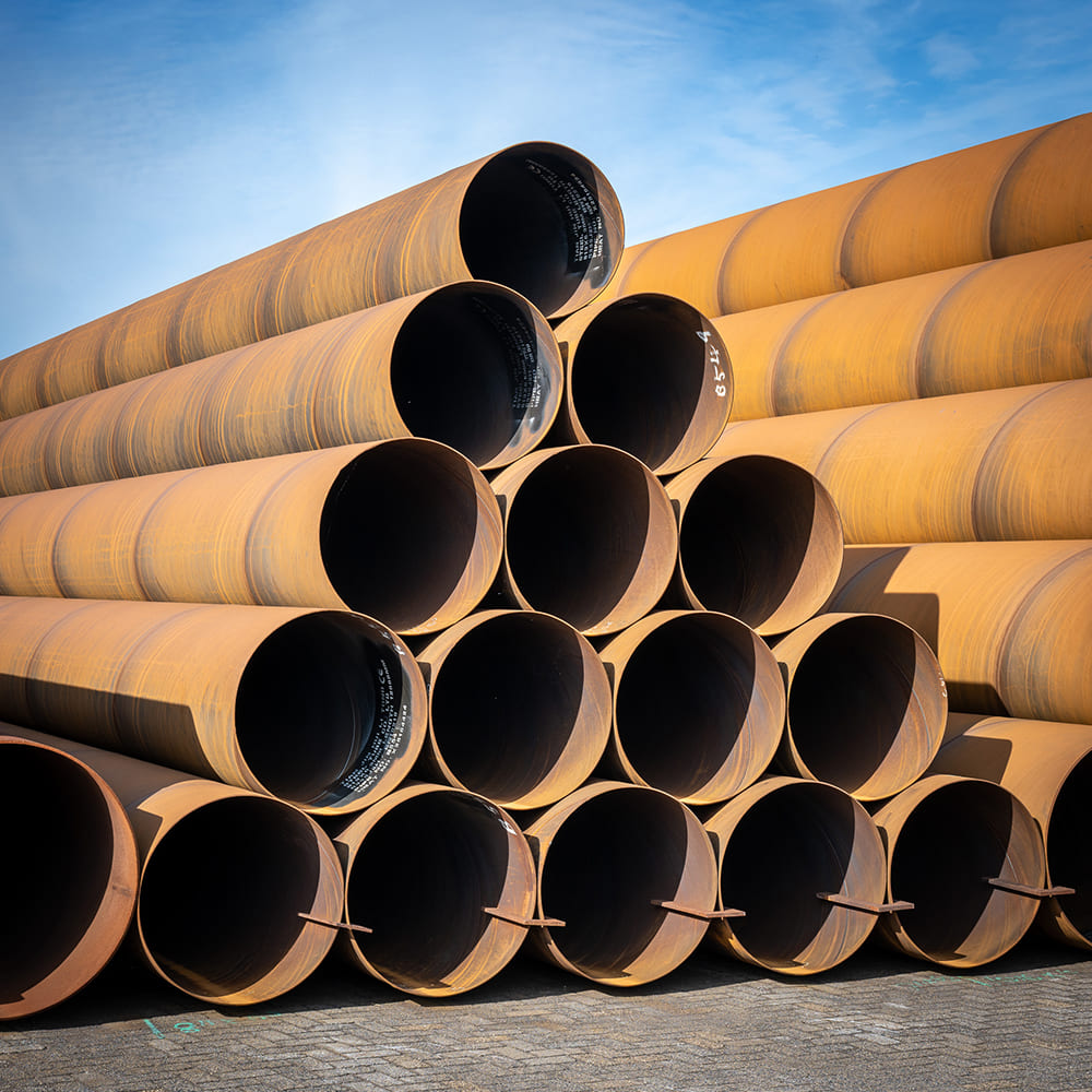 At Solines in Moerdijk, a batch of spiral-welded steel tubes Ø 813.0 × 6.30 millimeters is available. It concerns more than 25 tons with a total length of over 200 meters, produced in steel grade S355J2H to EN 10219. The tubes are available in lengths up to 12.00 meters and are in stock for immediate delivery from our Moerdijk location.