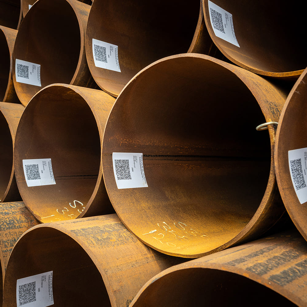 Thanks to their high strength, excellent weldability and precise tolerances, these robust S355J2H construction tubes Ø 355.6 × 6.35 millimeters are widely used across various sectors. Typical applications in civil engineering (ground, road and waterworks) include foundations, sheet piling, jetties and bank protection, and quay reinforcement. They are also ideal for steel construction, machine building, pipeline work and transport structures, where stability and durability are key.