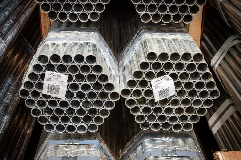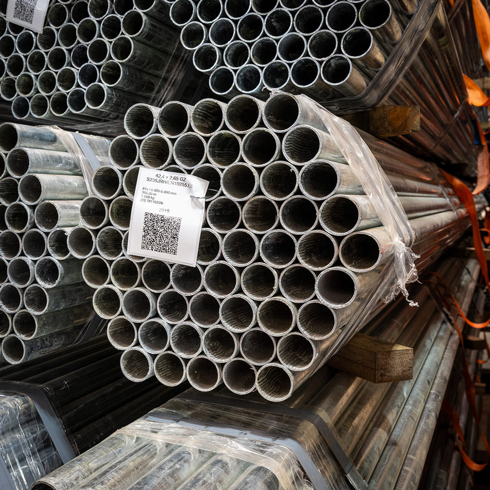 Solines has received a new batch of galvanized tubes Ø 42.4 × 2.65 millimeters this week, totaling nearly 75 tons of steel. In all, this amounts to more than 27,000 meters of tube, packed in bundles of 61 pieces—366 meters per bundle. The tubes are supplied in 6.00-meter lengths and produced in steel grade S235JRH / EN10255. This batch is available from stock immediately.
