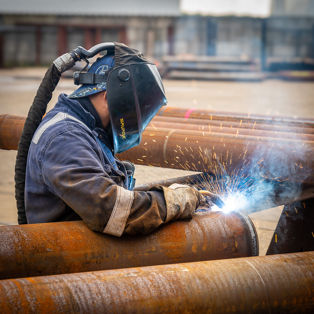 Solines Welding & Construction supplies steel tubes completely to size, including welded base plates, trompings, flanges, drill points and other welded components.
