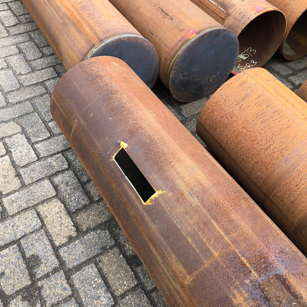 For this project, steel tubes with a diameter of Ø 406 mm were chosen. Solines Welding and Construction fitted the tubes with a cable hole, so that the cables can be incorporated into the mast. The tubes were also fitted with a footplate.
