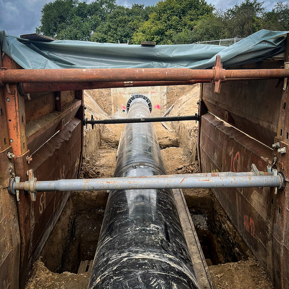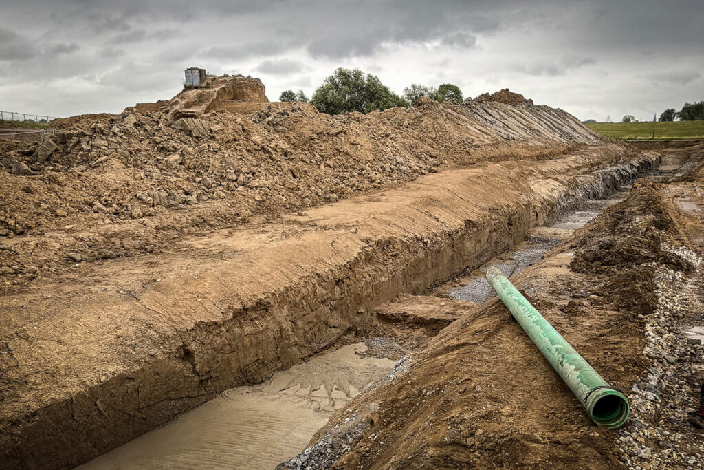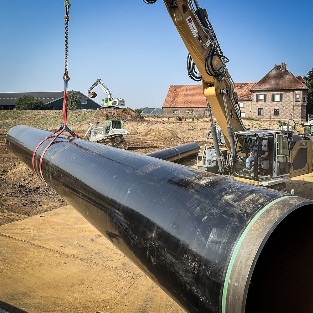 For the dike reinforcement in Rheinberg, Solines supplied more than 154 meters of steel tubes with PE coating. These tubes are essential in hydraulic engineering projects: they withstand heavy loads and provide long-lasting protection against corrosion, even in wet or aggressive environments.